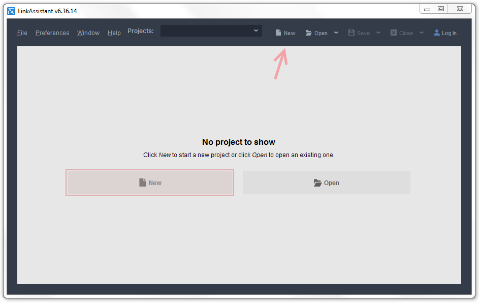 To start looking for link prospects, you need to create a project in LinkAssistant. This is a one-step process, and all you need to do is follow the wizard that pops up automatically once you open the program. To activate it yourself, simply click New: