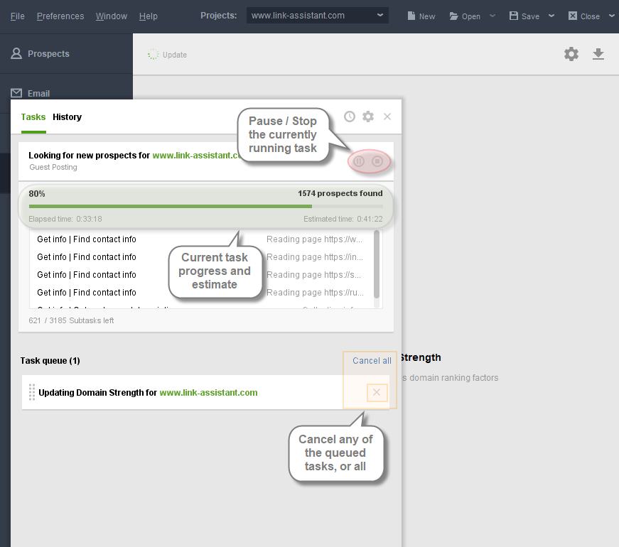 Use LinkAssistant's internal browser for easy navigation around your prospects' websites.