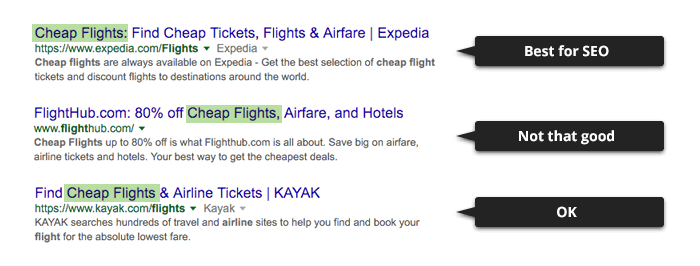The closer your target keyword is to the beginning of your title tag, the more relevant your page will be considered by search engines. Try to always start your title with your keywords to emphasize their importance.