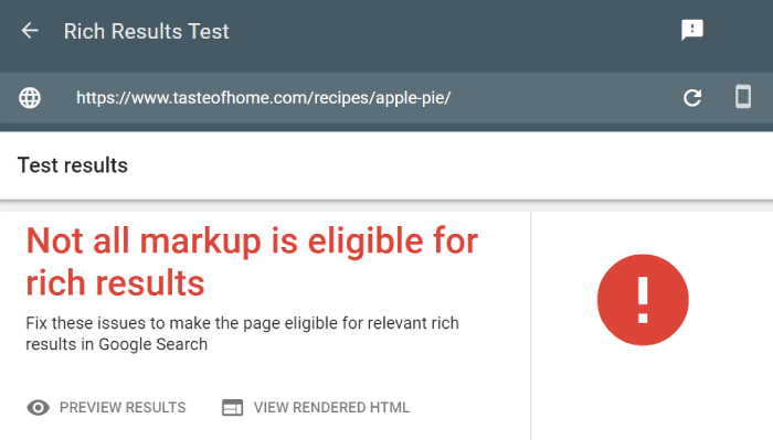 Conveniently, Google also provides a way to check your markup — Rich Result Test. Simply enter your URL and get the verdict, along with some advice on how to fix discovered issues: