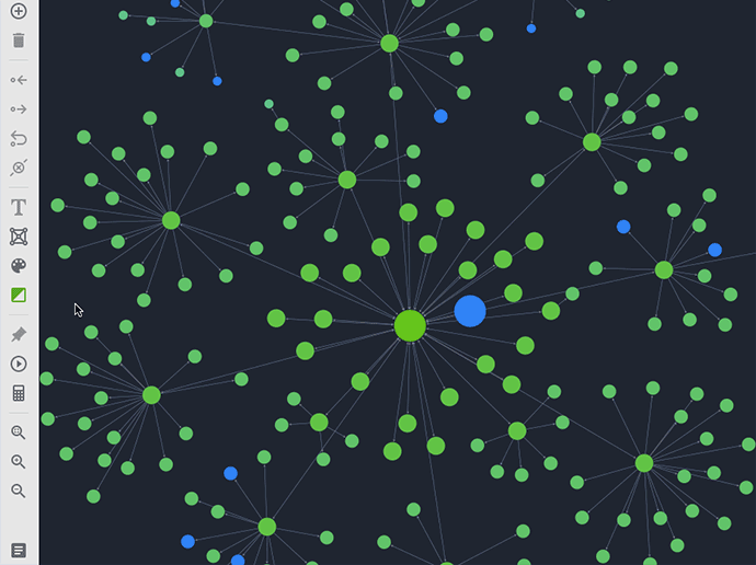 By clicking on any node, you enter the editing mode. Using the action buttons on the left, you can: